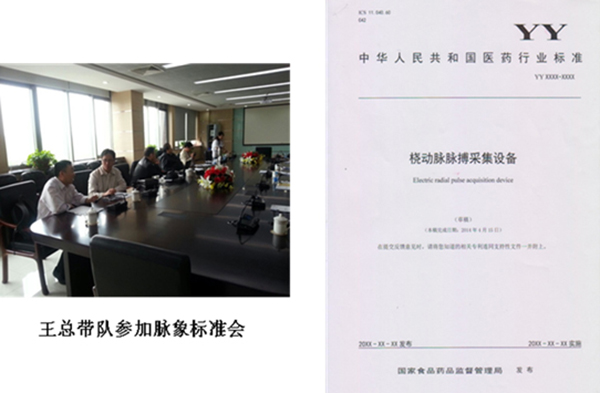 2014年4月,中華人民共和國醫(yī)藥行業(yè)中醫(yī)診斷行業(yè)標(biāo)準(zhǔn)會在天津醫(yī)療器械質(zhì)量監(jiān)督檢驗中心召開,公司作為中醫(yī)診斷行業(yè)標(biāo)準(zhǔn)制定方、驗證方,董事長王聯(lián)攜技術(shù)總監(jiān)、產(chǎn)品部經(jīng)理應(yīng)邀參加行業(yè)標(biāo)準(zhǔn)會議。