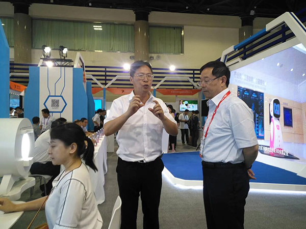 董事長王聯(lián)向工信部副部長張克勤介紹公司的中醫(yī)綜合診斷系統(tǒng),中醫(yī)醫(yī)聯(lián)體及中醫(yī)機器人在全國基層醫(yī)療和養(yǎng)老方面的應用情況。
