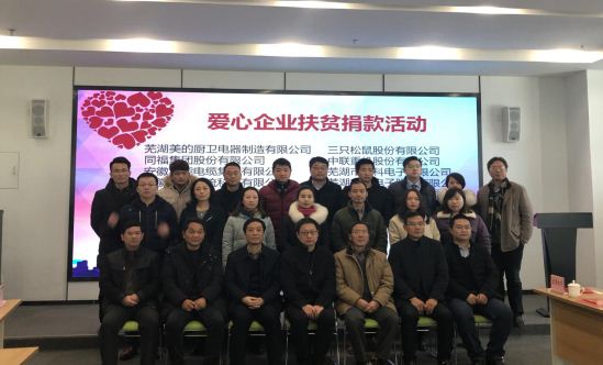 會上,舉行了愛心企業代表向貧困村的集體捐贈儀式。