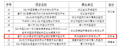 8月17日,中華人民共和國工業(yè)和信息化部官方網(wǎng)站發(fā)布了“5G+醫(yī)療健康應(yīng)用試點(diǎn)項目名單”,由蕪湖圣美孚科技有限公司牽頭,聯(lián)合蕪湖市中醫(yī)醫(yī)院、蕪湖市高科電子有限公司、安徽中醫(yī)藥高等專科學(xué)校、中國電信股份有限公司蕪湖分公司、天津理工大學(xué)五家單位共同申報的《基于5G的慢性病防醫(yī)養(yǎng)全程的智慧中醫(yī)應(yīng)用》項目成功入選此次應(yīng)用試點(diǎn)項目名單,也是安徽省入選“5G+中醫(yī)診療”方向名單的項目。